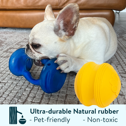 Calming Paw Partner isn’t just a toy; it’s a dental tool disguised as a fun activity. The specially designed bumps on the toy help clean your dog's teeth as they play, leading to better oral health and a fresh breath. A win-win for both of you!